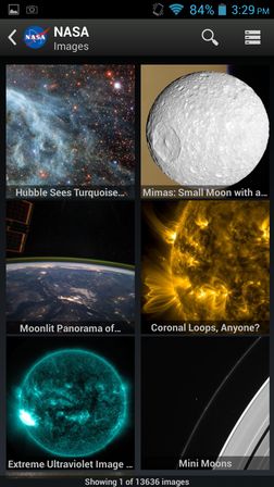 Entire app is devoted to images concerning space. They are spread out across categories (educational, planets, galaxies, weather, etc). Each image has a short explanation next to it, which helps you understand what the image is showing. Images that you like can be set as a wallpaper straight from the app.