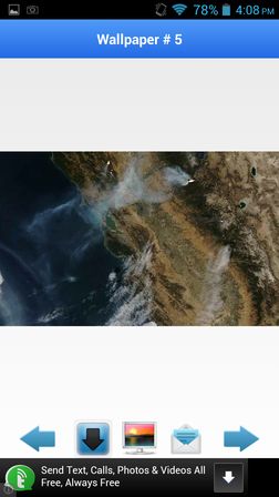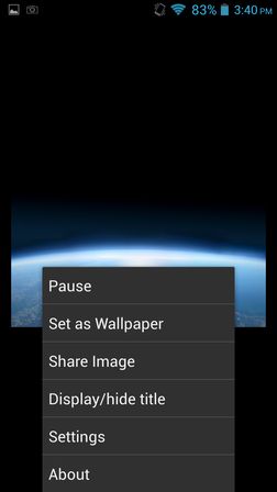 Available images include images of Earth from orbit, space, continents, spacecraft, etc. When you find something you like, select that image from the gallery to open it up fullscreen. Once it’s fullscreen, tap on the screen to open up an on-screen menu for setting the image as wallpaper or sharing it with your friends.