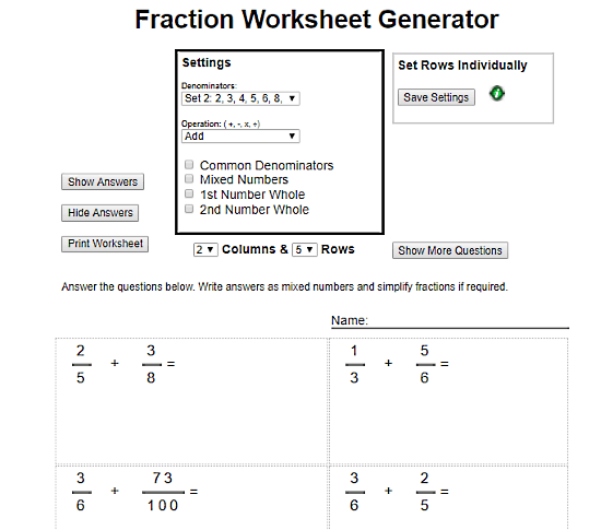 HelpingWithMath is specially designed for parents who want to help their children with maths. It provides printable worksheets to help students practice what they learned. Here, you can generate math worksheets for kindergarten to 8th standard students. You can set the total number of questions for the worksheet by adjusting the number of rows and columns. It also gives you options to select specific types of problems and limits. With ‘Show More Question‘ button, you can switch all the current questions with new ones. You also have an option to include an answer key in your worksheet. The final worksheet is a PDF file and you can download it or print it directly from there.