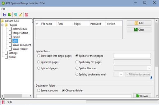 PDFsam Basic is a very advanced PDF splitter software for Windows 10, which lets you split PDF documents in several different ways. Check out how the split configurator looks like on the image above.