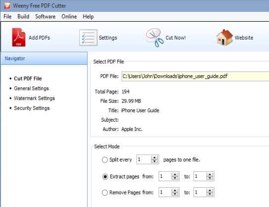 What’s interesting about this PDF splitter software is that it also supports more advanced features like PDF watermarking, PDF document security and author information editing, for the split documents of course. Give it a try if you need those kind of options setup for the created documents.