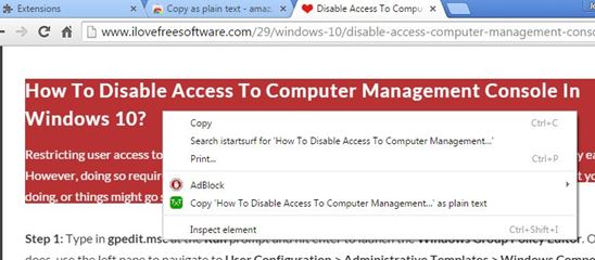 There it’s going to work alongside the standard copy option (it does not replace it). You know what to do when something needs to be copied as plain text. Just make a selection, right click and select the “Copy as plain text option”, see image above. After that just paste it wherever it is you need the text pasted. Pasted text won’t have any kind of formatting, hyperlinks are also removed.