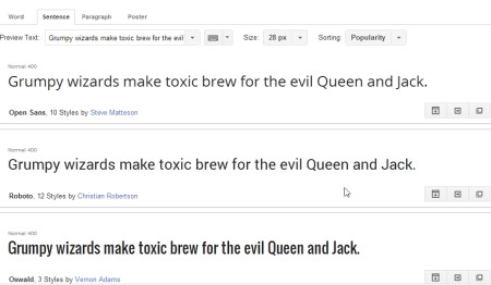 Google Fonts is another interesting platform to download free fonts. You can view the available fonts in 4 different patterns, before you finalize any of them. Filters can also be applied to narrow your search to exactly the kind of fonts that you are looking for. In case you are not able to decide among a group of fonts, you can add them all in a separate list and review all of them. Once reviewed, simply hit the download icon and start downloading.
