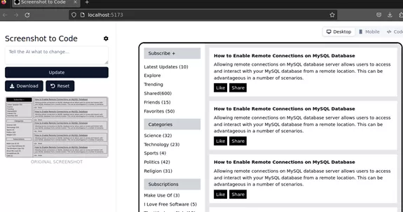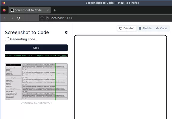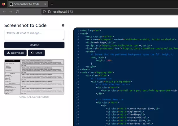 If you are looking for an AI based tool that can generate code by reading a screenshot image, then the tool I have mentioned here will work perfectly. With this, you can take the capabilities of GPT-4 vision to the next level. Apart from the screenshot, you can simply give it an exported Figma UI design as an image and it will generate the code for you.