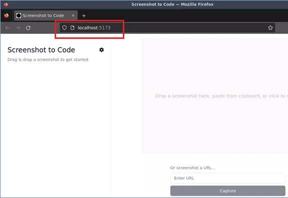 Now, when the UI is up, simply type http://localhost:5173 in the address bar and then main UI will show up. It looks like as shown below.