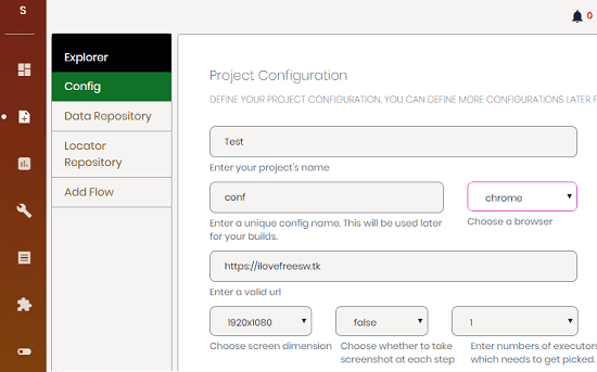 Here you will need your knowledge of automate design before actually adding projects here for the test. You must have good knowledge of test flows writing, locator repository, and API repository like topics. After creating an account, you can start adding your projects. In the project details, you just need to specify the details like name, URL and number of threads you want along with what browser you want to use.