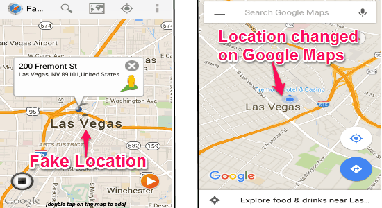Step 4: To check whether your current GPS location is changed or not on your Android phone, simply open up any of the location-based apps such as Google Maps, MapsToMe, Glimpse, etc. After that, whatever fake GPS location you have selected will be shown on the map of these apps. For example, I have used Google Maps to check whether my current location is changed to Las Vegas or not, as I have selected Las Vegas as my fake GPS location.