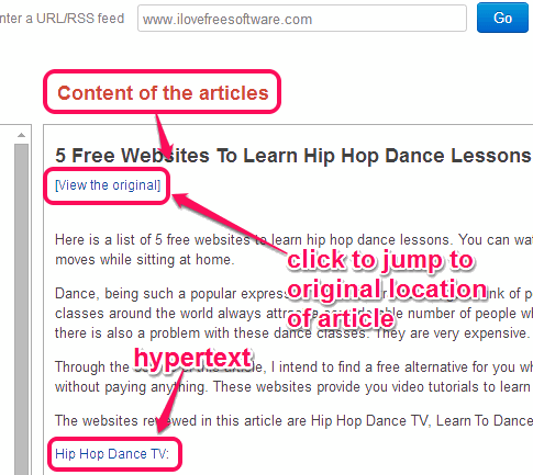 Multiple things are associated with this website that makes it an impressive website. Firstly, I was impressed that it extracts only relevant hypertext. Moreover, whole task to exclude unnecessary content from articles takes place on the servers, that greatly saves bandwidth. Apart from this, for RSS feed, it extracts full articles so you don’t have to access original location of any headline to read a particular article.