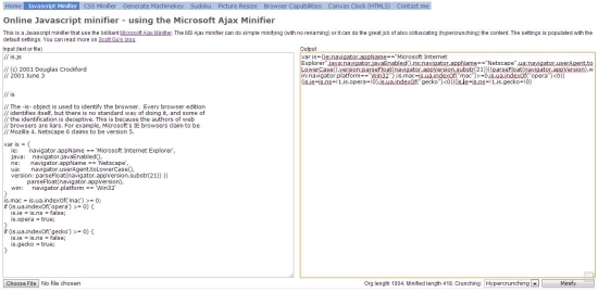 Last is Online Javascript Minifier, another free online JavaScript compression tool. It’s a reliable JavaScript minification tool that uses Microsoft Ajax Minifier to compress your JavaScript files. It can do normal file compression or do code obfuscation to reduce the file size by hypercrunching (the process of shortening the names of local variables and removing unreachable code).