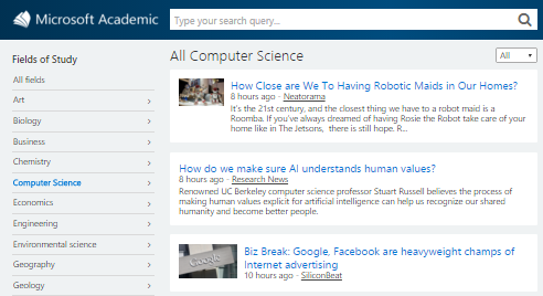 Microsoft Academic is a free website where one can browse and read millions of academic research papers. Apart from research papers, Microsoft Academic gives you the latest news and articles on current scientific discoveries and inventions. The articles and papers are neatly categorized into different fields which you can browse.