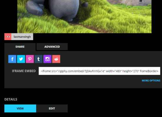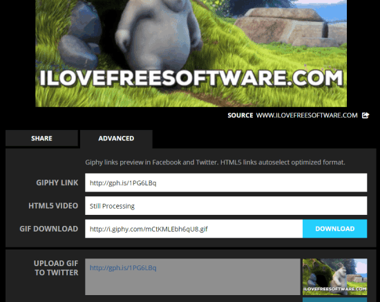 You can also access ADVANCED tab using which you will be able to download your GIF and copy its URL.