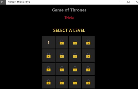 Windows 10 Quiz Game App based on Game of Thrones TV Series