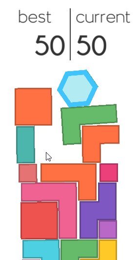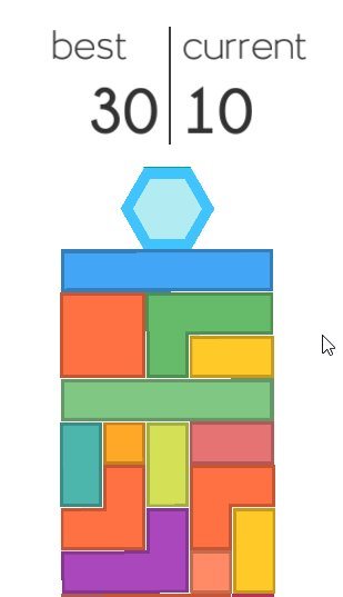 Removing blocks give you points and add to your score. But the blocks are of various sizes and shapes, so you have to be careful while removing them. Because if you removed a block and it crates a tilted shape, then the hexagon will topple down ending the game for you. The below screenshot shows the position of the hexagon after some blocks have been removed.