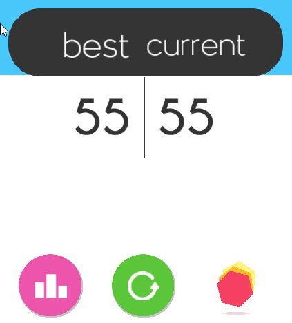 The top of the screen shows two scores, your best score so far in the game and your current score in the game that you are playing. When the hexagon topples down a game over screen comes up like the one shown in the screenshot below.
