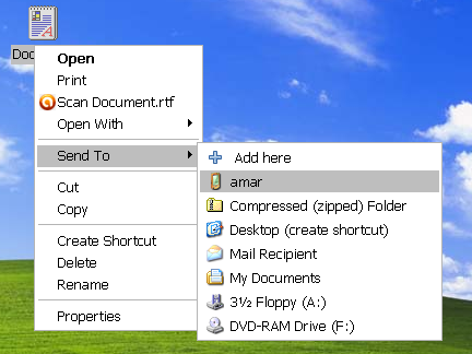 Now when you right click on any item and select the Send to option you will find the name of the folder you just added to the list on the sub menu. Adding the selected folder to the sub menu can seem confusing and official help is not available but you can check on the internet for detailed help. Removal of a folder from the Send to menu can prove to be difficult but it is not impossible.