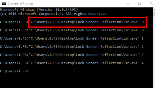Step 3: This is an optional step. Use this step when you want to set the desktop wallpaper in tile, center, stretched, fit, or fill mode. You need to take the help of CMD. Open Command Prompt window, drag n drop lsr application and choose any number from 0 to 4. So, your command would be: source location of lsr.exe 0/1/2/3/4/5.