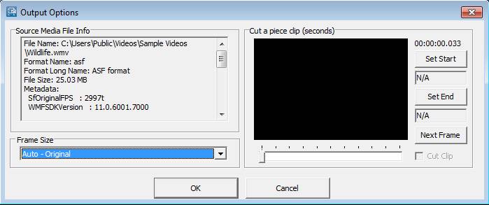 On the right, you can cut the video to just the part that’s most interesting. Do this with the help of the Set Start and Set End buttons or move video incrementally with the help of the Next Frame button. With the help of the Frame Size button on the left you can easily change the size of the GIF animation. There’s a lot of different frame sizes which are available.