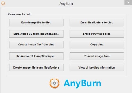 Download it to PC using the link present at the end of this article. After this, extract its zip file with any zip archiver software and execute AnyBurn.exe application file. This will open main interface of AnyBurn where you will find all of its features.