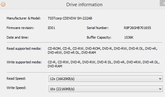 - It lets you view inserted disc information as well as whole drive’s detailed information including read-write supported media.
