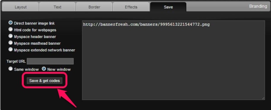 - Lets you enter the target URL, in order to directly upload the banner on websites, blogs or forums.