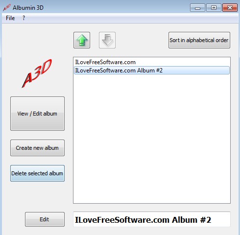 Created albums are all gonna be added to the main list from where you can easily manage them. Create new ones, delete old ones and so on. They’re gonna stay saved inside Albumin 3D so that next time that you run this free image organizer you can access created albums again.