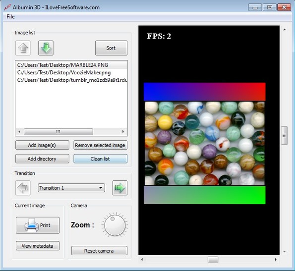 Selected images will be added to the list above. Now in order to browse through them using the 3D transitions you’re gonna have to select one of three available effects and click either the left or right arrow, depending in which direction of the photo list you would like to go.