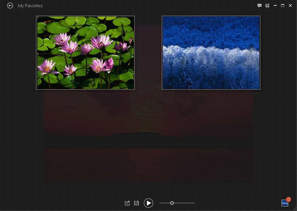 If you have a lot of photos, and you only view a few of them, you can add them to favorites, so that later on, when you decide to refresh your memory of a certain photo, you can easily find them in the Photo+ favorites, found in the lower right corner of the application. All the images that you “like” will be placed there, and when program is opened next time, you can easily access them by clicking on the favorites icon.