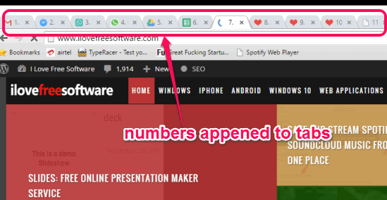 Step 2: After this, you will notice that numbers are added to all opened tabs in sequential order automatically. When you will open more tabs, it will also add numbers to those tabs.