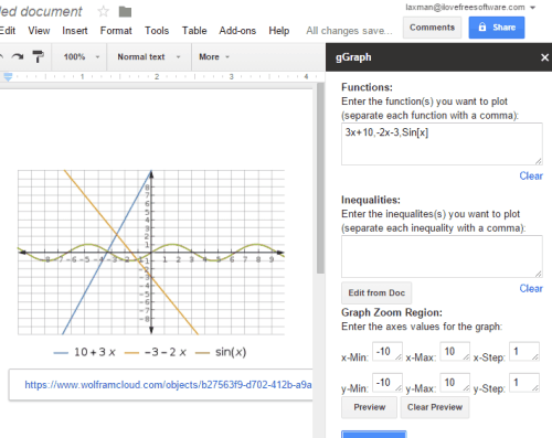g(Math) is a powerful and free Google Docs add-on that lets you create and insert complex equations and graphs in a document. Although Google Docs comes with built-in Equation option, but using that option is not so convenient. This add-on lets you easily create Math expressions using a sidebar and preview them before inserting in the document.
