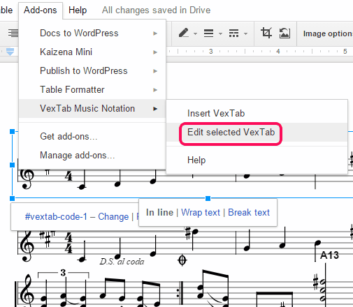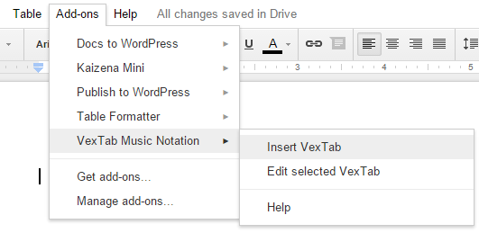 Step 2: Now go to Add-ons menu → VexTab Music Notation → and click on Insert VexTab option.