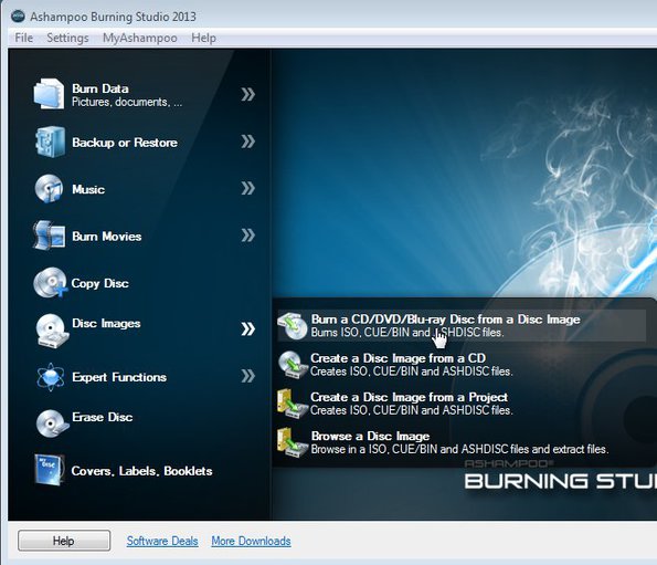 Ashampoo Burning Studio 2013 is a very popular free disc burning software for Windows. It’s a competitor and pretty much the main alternative to Nero Burning Rom which you can use to burn data, video, photo and audio CDs, DVDs and Blu-Rays. On top of the basic function of disc burning, Ashampoo also offers a feature rich cover creator, backup utility for creating ISO, CUE/BIN, and its own ASHDISC disc images, on-the-fly disc copying, and disc editor which allows you to create custom disc images.