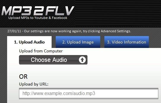 MP32FLV is a free MP3 to video converter that lets you upload MP3 to Youtube or Facebook. Both of these services permit easy ways to upload video files, but surprisingly, there is no easy way to upload just an audio file, like MP3 file. MP32FLV fills this deficiency.