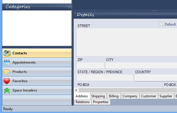 Interface of KS CRM 2013 can be seen on the image above. Main options for switching between various different modules available in this free customer relationship management software can be seen all the way in the bottom left corner. Anything that you select from there will open up on the right where on the screenshot above you can see an empty contact entry. In the left sidebar, you can see options for managing contact categories, while all the way at the top, the standard combination of a classic menu and a toolbar down below are available.