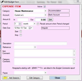 These are the list of categories which are given. After that click on the expenses category. There would be a list of all the expenses which you can incur. Double clicking on any one of them you will find a box like the one in the screenshot below: