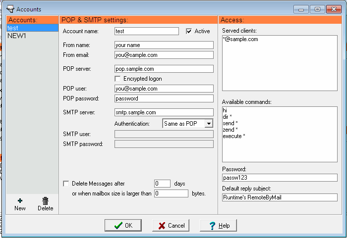 First of all you need to create an account within RemoteByMail. In this account, you need to setup an Email Address to Monitor. RemoteByMail will monitor this email address for new emails. The email address will need to be POP enabled, so I recommend going with a Gmail address. You need to configure the POP settings of your email account in this so that RemoteByMail can check this email account for new emails. RemoteByMail will also use this email account to send you files and information about your computer.