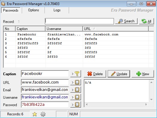 Password generator is also available, you can use it when registering on a website, because very complex passwords are created. They are added automatically to the Password field down below, so you can save and store online account information more quickly. Key features of Era Password Manager are: