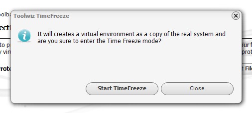 One of the things that Toolwiz Time Freeze does, and where it gets its name from, is it creates a virtual environment for you to do what can be performed risky activities online. The software takes a snapshot of your system configuration and freezes it. This protects your whole system from changes being made while the Time Freeze is in effect. A virtual environment is basically an operating system within an operating system.