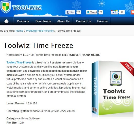 Toolwiz Time Freeze is a free software to protect your system from malicious attacks. If you’re like me, you spend a good portion of your day online. The online world is full of predatory people and entities, as well as entities that want to put software on your computer that will help them sell products to you. What you need is a program that will protect you from all of these attacks. ToolWiz Time Freeze can be that piece of guardian software for you.