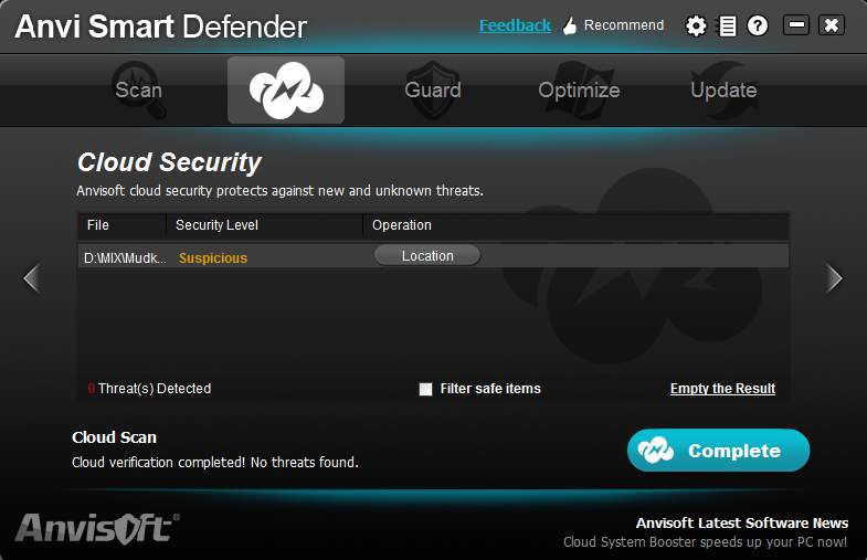 Overall detection rate of Anvi Smart Defender is good, files which were detected by other more popular anti-malware programs were also detected by Anvi, so there should be no problems with infections being undetected.