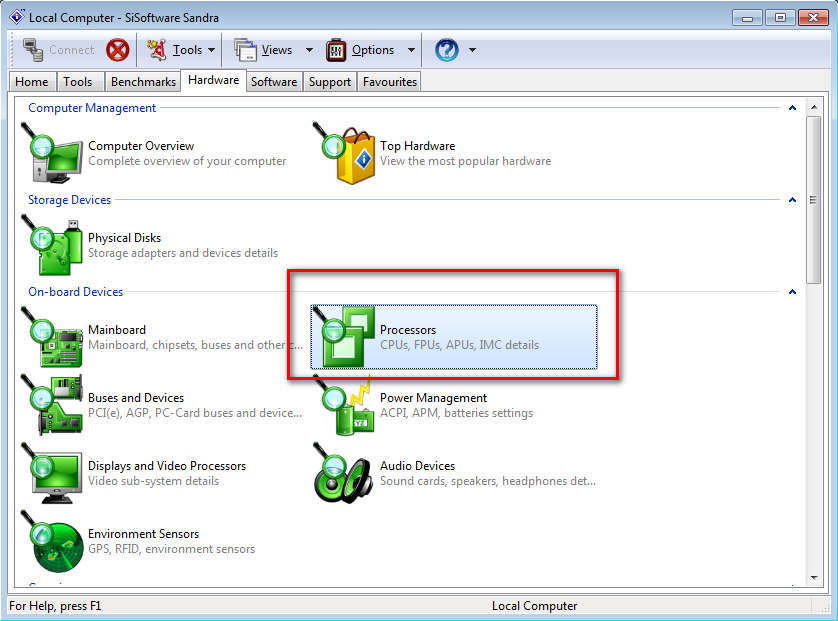 Checking up on hardware status is something that should be done on a regular basis, with Sandra Lite, you’ll be able to see what kind of status a certain piece of hardware has, for example check up on the CPU temperatures. To do that open the Hardware tab and select whatever it is that you want to keep track of, see image above.