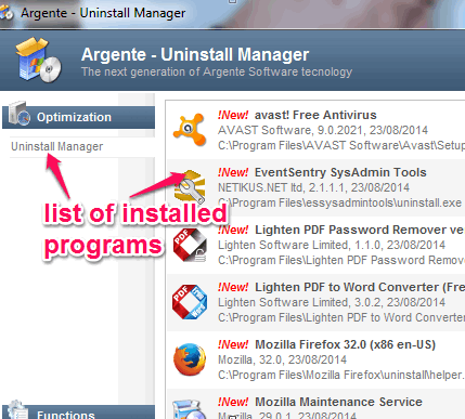 On its interface, it will show you list of all programs installed on your PC. Newly installed programs are also listed at the top of the whole list.