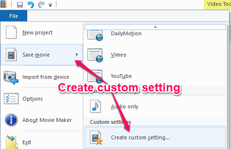 Step 2: After that, simply click on the “File” menu at the top and select “Save Movie” option. Then scroll down to the bottom of the menu and click on the “Create Custom Settings” option.