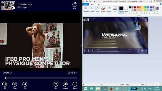 Metro Media Player Pro is a free video player app for Windows 8 and 8.1 which lets you playback videos of a large range of formats on your device. You can choose to play videos stored on your device of formats including avi, mp4, wmv, etc. Once the video has been opened, you can perform the standard video control functions from the bottom of the screen like playing, pausing, etc. You can also change the size of the video playback screen via the size toggle at the bottom, and if you want to multitask, you can snap the video player to any side of the screen and continue working on your task. You can also minimize the app and the app still continues to play back videos while minimized in the background.