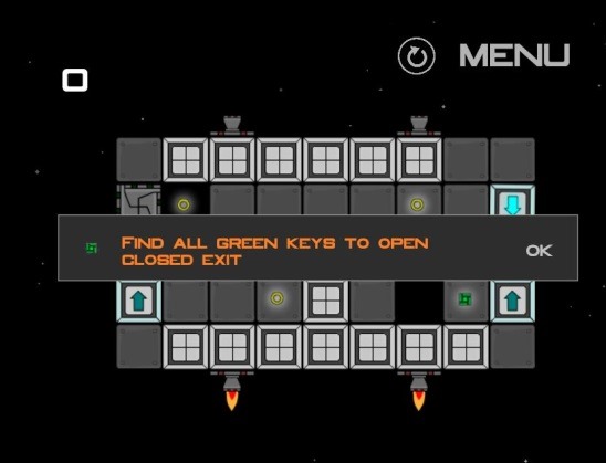 You start a level/ stage in an empty space with a spaceship. You’ll be moving around within the spaceship. But there’s a twist. There are gaps/ holes here and there in the spaceship. You have to avoid them, or else you’ll fall out of the spaceship. In order to reach home safely without falling off, you have to fire at various arrows pointing on different directions. Firing on these arrows actually rotates the whole spaceship. By rotating the space ship, you can make a safe way, where there are no holes.