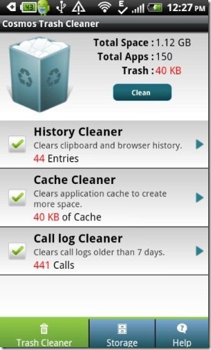 Trash Cleaner: Trash Cleaner cleans up the junk files on Android phone. The junk files includes browser history and clipboard history, cache cleaner and call log cleaner. Cleaning the junk files results in increasing the free space including its external and internal memory. By increasing the space, the Android starts working with improved speed. While cleaning the call logs, the app gives you the option whether to clean incoming calls, outgoing calls or missed calls. After cleaning the junk files, you can easily check the total used and available storage of your Android.