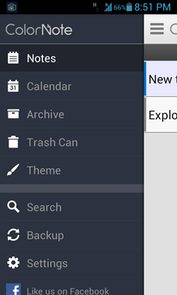 - In the app menu (see above screenshot), you can access various options like Notes (shows you a menu of notes), Calendar (shows you a calendar, where you can add notes to various dates), show Archives, view the Trash Can (from here you can permanently delete the previously deleted notes, or simply review them before deleting them), change the Theme, etc. You can also Backup the notes, Search the notes, or view the Settings of ColorNote etc. from this menu.