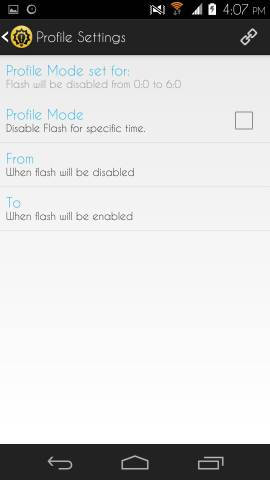 Profile settings provide you the ability to turn off the flash light notification for some time. Use this option if you don’t want to wake up to strong flashing lights in the night.