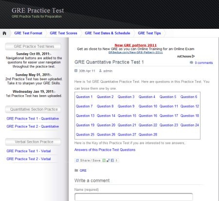 Update: The GRE Practice Test site is not operational anymore. (2 Mar 2013)