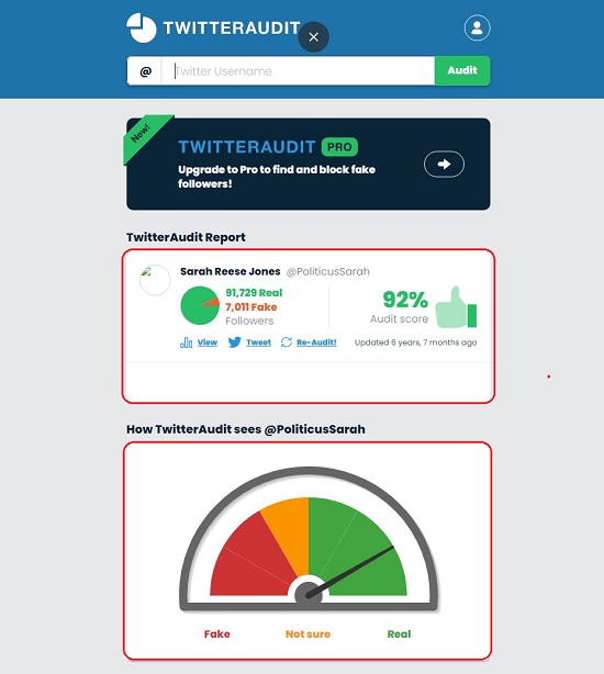 This is yet another website that audits Twitter accounts for Fake Followers. Like the previous website, you must authenticate and grant access to your Twitter account to perform the audit.