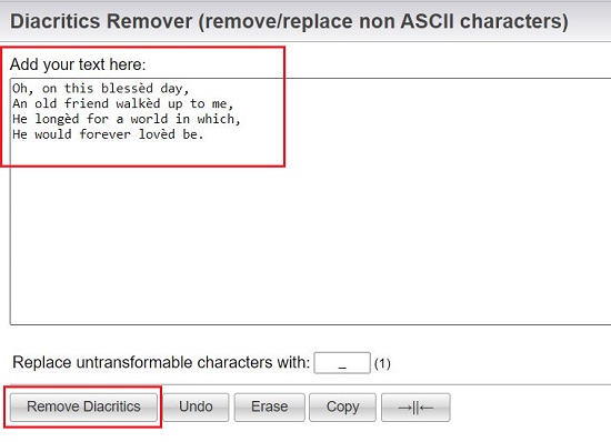 Click here to use this diacritics remover tool.